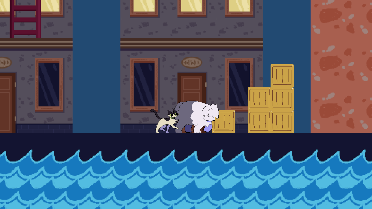 Henry the dog and Viola the cat are two pets who can't get along. Yet, they must work with each other to find their way home. Henry and Viola are uniquely characterised by their different set of mechanics, and the game's obstacles show how these mechanics complement each other.